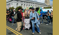 Ежегодный Love parade в Сан Франциско. Площадь и подъезды к ней заполняются трейлерами